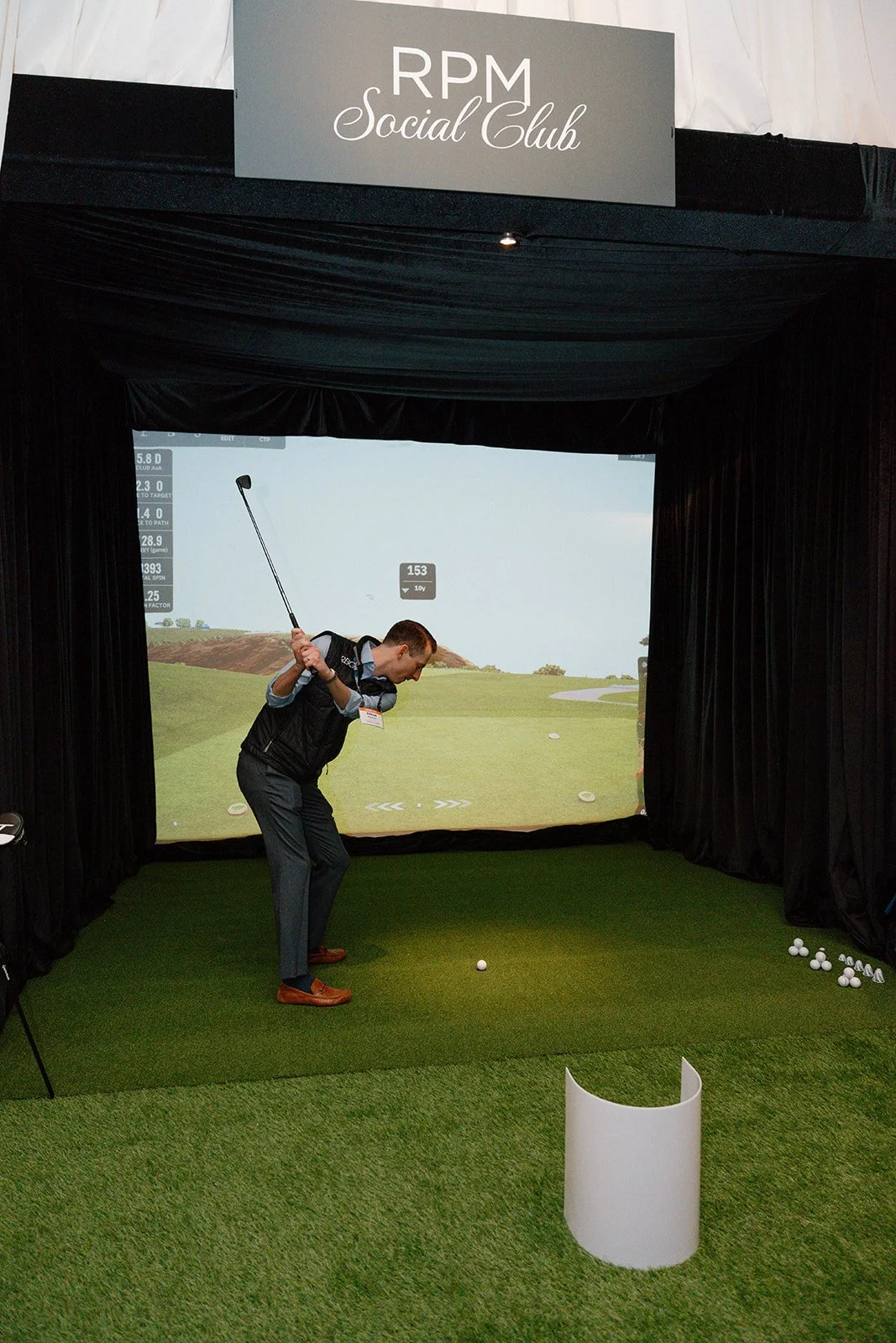 Unlike traditional golf outings, our mobile simulator keeps your event running smoothly regardless of weather or location. Guests can play iconic courses, compete in skill challenges, or simply enjoy hitting shots in a relaxed, social environment.
